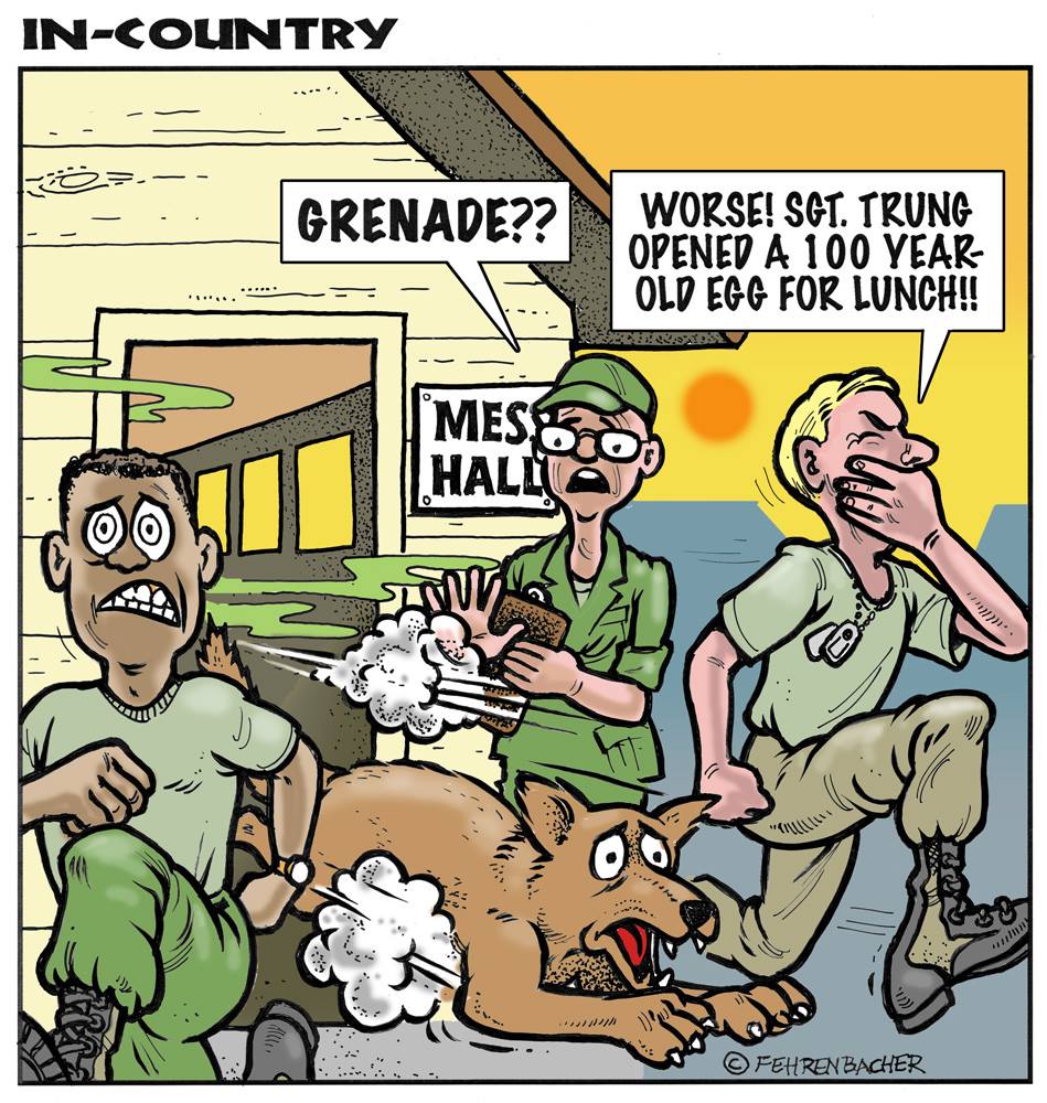 Phil enlisted in the Army in 1965 where you served for years in Vietnam.  He became a graphic designer and has worked for the state of Oregon for 26 years.  He retired in 2003 and started the Cartoon "In-Country".  The cartoons reflect his experiences during his tour of duty in South Vietnam.