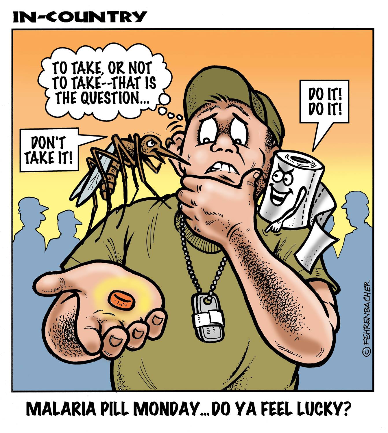 Phil enlisted in the Army in 1965 where you served for years in Vietnam.  He became a graphic designer and has worked for the state of Oregon for 26 years.  He retired in 2003 and started the Cartoon "In-Country".  The cartoons reflect his experiences during his tour of duty in South Vietnam.