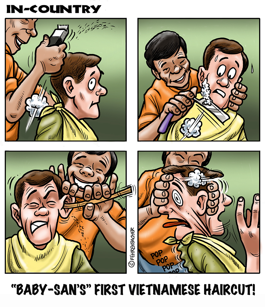 Phil enlisted in the Army in 1965 where you served for years in Vietnam.  He became a graphic designer and has worked for the state of Oregon for 26 years.  He retired in 2003 and started the Cartoon "In-Country".  The cartoons reflect his experiences during his tour of duty in South Vietnam.