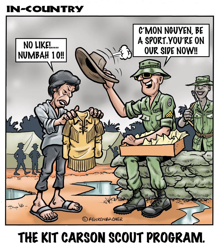 Phil enlisted in the Army in 1965 where you served for years in Vietnam.  He became a graphic designer and has worked for the state of Oregon for 26 years.  He retired in 2003 and started the Cartoon "In-Country".  The cartoons reflect his experiences during his tour of duty in South Vietnam.