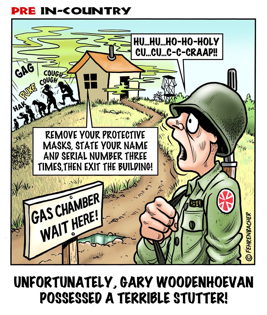 Phil enlisted in the Army in 1965 where you served for years in Vietnam.  He became a graphic designer and has worked for the state of Oregon for 26 years.  He retired in 2003 and started the Cartoon "In-Country".  The cartoons reflect his experiences during his tour of duty in South Vietnam.