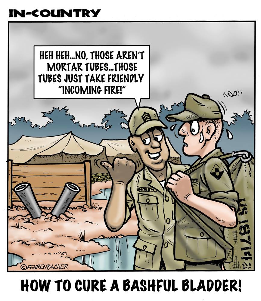 Phil enlisted in the Army in 1965 where you served for years in Vietnam. He became a graphic designer and has worked for the state of Oregon for 26 years. He retired in 2003 and started the Cartoon "In-Country". The cartoons reflect his experiences during his tour of duty in South Vietnam.