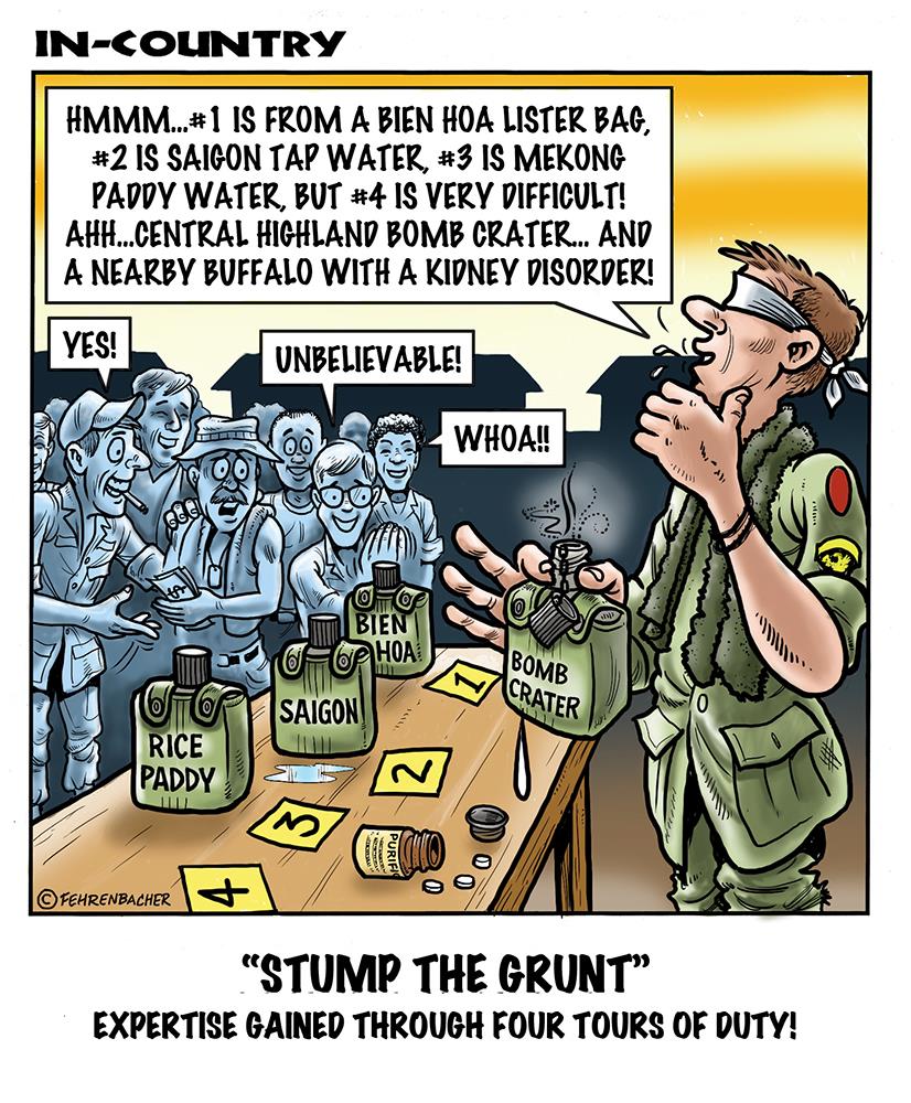 Phil enlisted in the Army in 1965 where you served for years in Vietnam. He became a graphic designer and has worked for the state of Oregon for 26 years. He retired in 2003 and started the Cartoon "In-Country". The cartoons reflect his experiences during his tour of duty in South Vietnam.